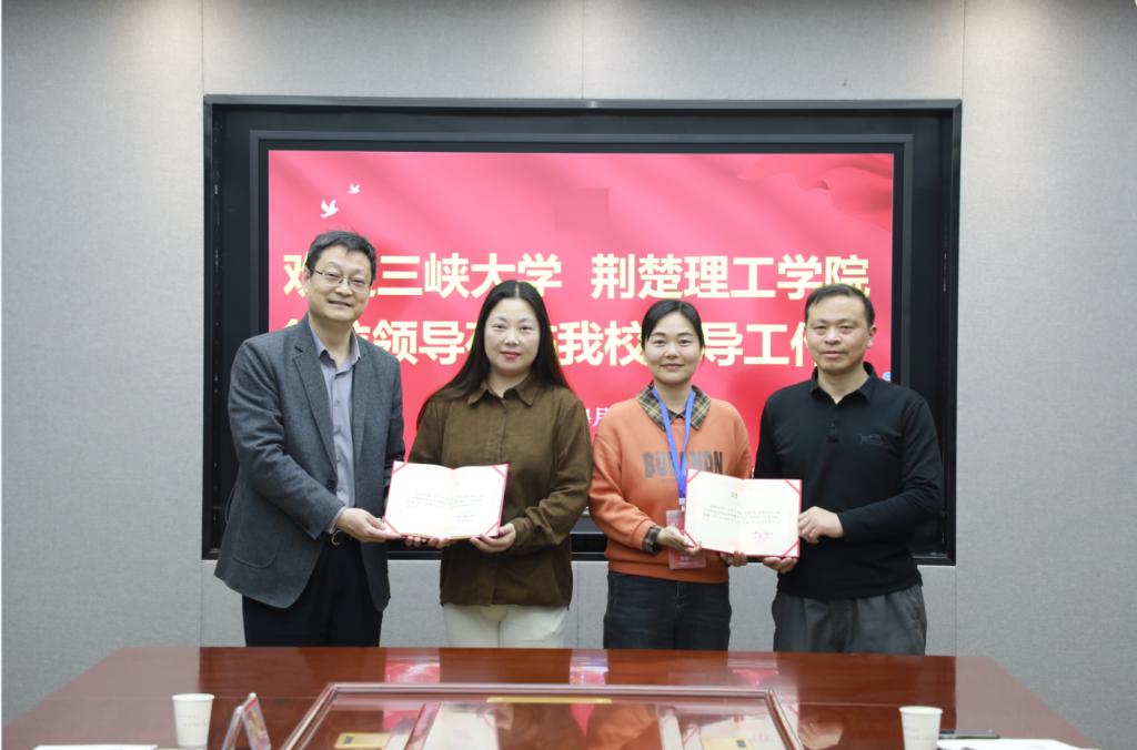 在此期间,刘诺亚和席敬一行来到荆门市外语学校,受到该校书记李春华和校长杨莎莎的热烈欢迎。两位领导一致表示大力支持荆楚理工学院和三峡大学的合作项目,为培养学生做好服务工作。学院陪同客人参观了学校,并就实习基地建设,学生培养,导师职责等方面举行三方座谈交流。荆门市外语学校全体领导班子及指导教师代表参加座谈。座谈会上,席敬和刘诺亚为荆门市外语学校两名指导教师颁发导师聘书。