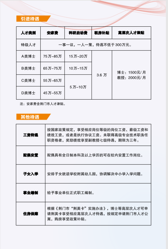 3.享受荆门市当地人才支持政策(以当年政策为准)。