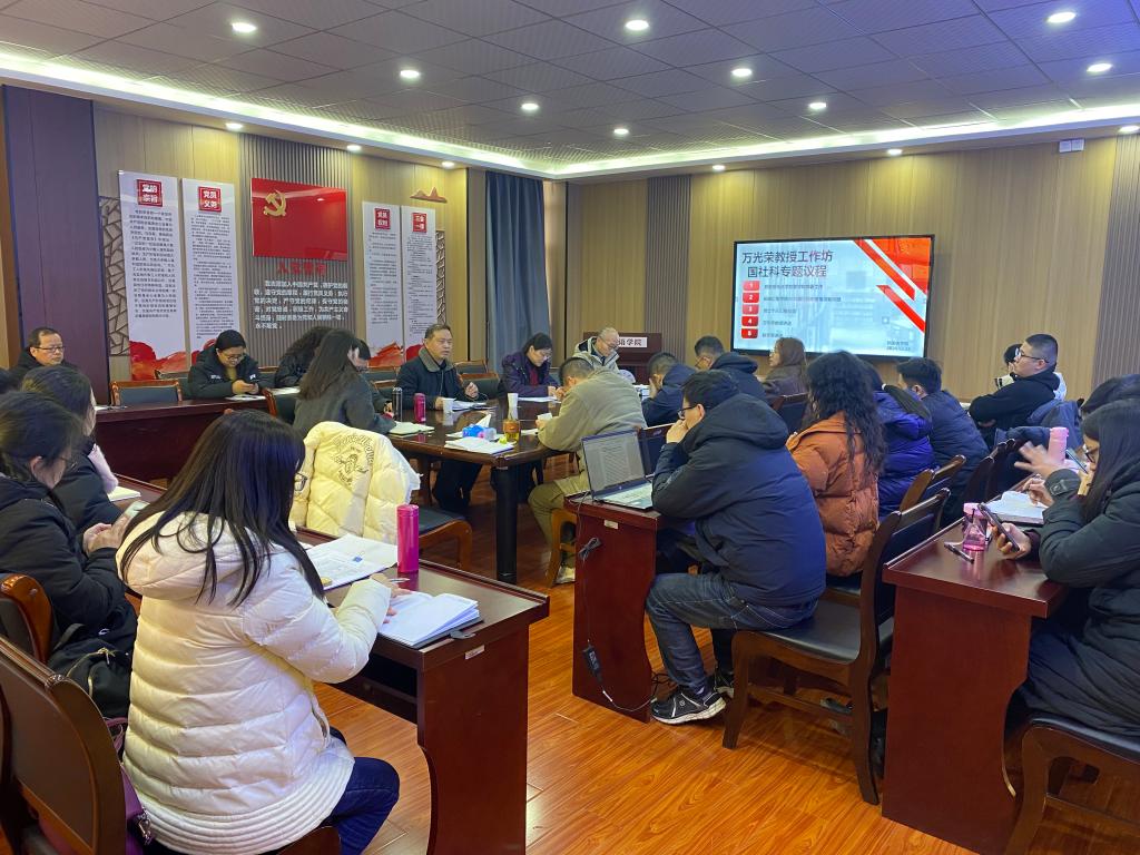 参会博士分别对申报工作进行表态和汇报交流,系部主任对申报国社科的博士在教学科研方面的支持和努力做了表态发言。万光荣教授从感叹、感动和感想三个方面表达了个人对学院工作的支持,对国社科申报指导的责任和对学院发展的信心。