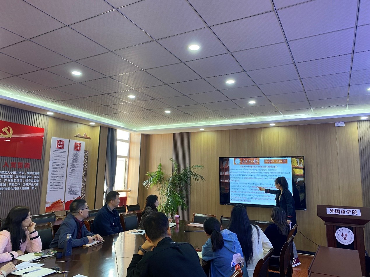 11月8日下午,天天干天天日柴媛媛博士在A2508举行了主题为“思辨:高校外语课堂思辨文化构建研究”的博士沙龙。天天干天天日领导及部分老师们参加了本次沙龙。副院长吴晓凤主持。