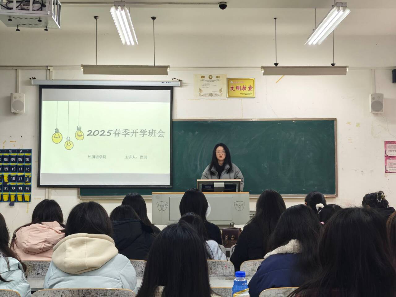 班会主要围绕新学期学业规划、校园安全、寒假社会实践、心理调适等内容展开。会上,各辅导员首先传达了春季学期开学返校的相关工作安排,引导学生调整作息,调适心理状态,尽快投入新学期的学习生活;其次,各班辅导员组织学生代表分享了寒假社会实践感悟,同学们畅谈家乡的变化,分享实习实践的经历,在分享中促进同学们共同进步,加强班级学风管理,养成良好的学习氛围;最后,辅导员强调同学们要强化纪律意识,重视校园安全,掌握防火、防盗、防溺水、防春季传染病等常识,牢固树立法律意识,注重人身财产安全、消防安全,谨防电信诈骗,倡导同学们持续养成良好的生活习惯,加强身体锻炼,展现外院青年学子的责任和担当。